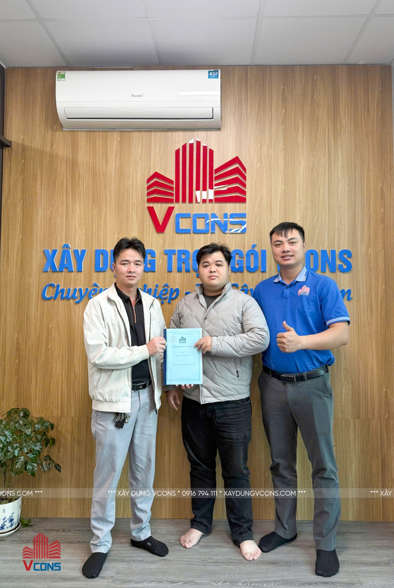 Hôm nay, sau thời gian thảo luận và thống nhất toàn bộ phương án, Vcons và anh Duy – Thanh Xuân đã chính thức ký kết hợp đồng xây dựng.